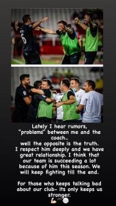 – Nedavno sam čuo glasine o „problemu“ između mene i trener Stanojevića. To nije istina. Izrazito ga poštujem i imamo odličan odnos u klubu. Mislim da naš klub ne bi bio ni upola dobar ove sezone bez njega. Borićemo se do kraja, a za ove koji pričaju loše o klubu, znajte da nas to čini jačim – Napisao je Natho u svojoj Instagram priči.